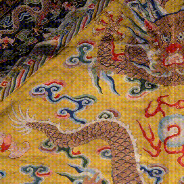 ▲清 黄地缂丝龙袍局部