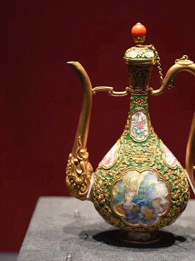 ▲清乾隆 金胎画珐琅执壶 故宫博物院藏