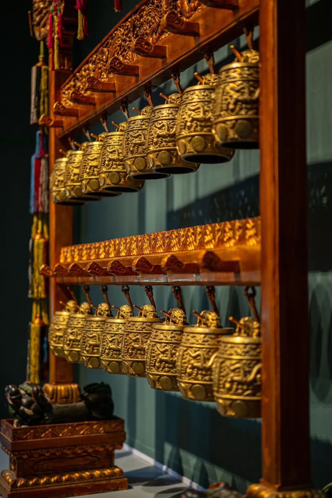 ▲清乾隆 铜镀金双龙钮云龙纹编钟 故宫博物院藏
