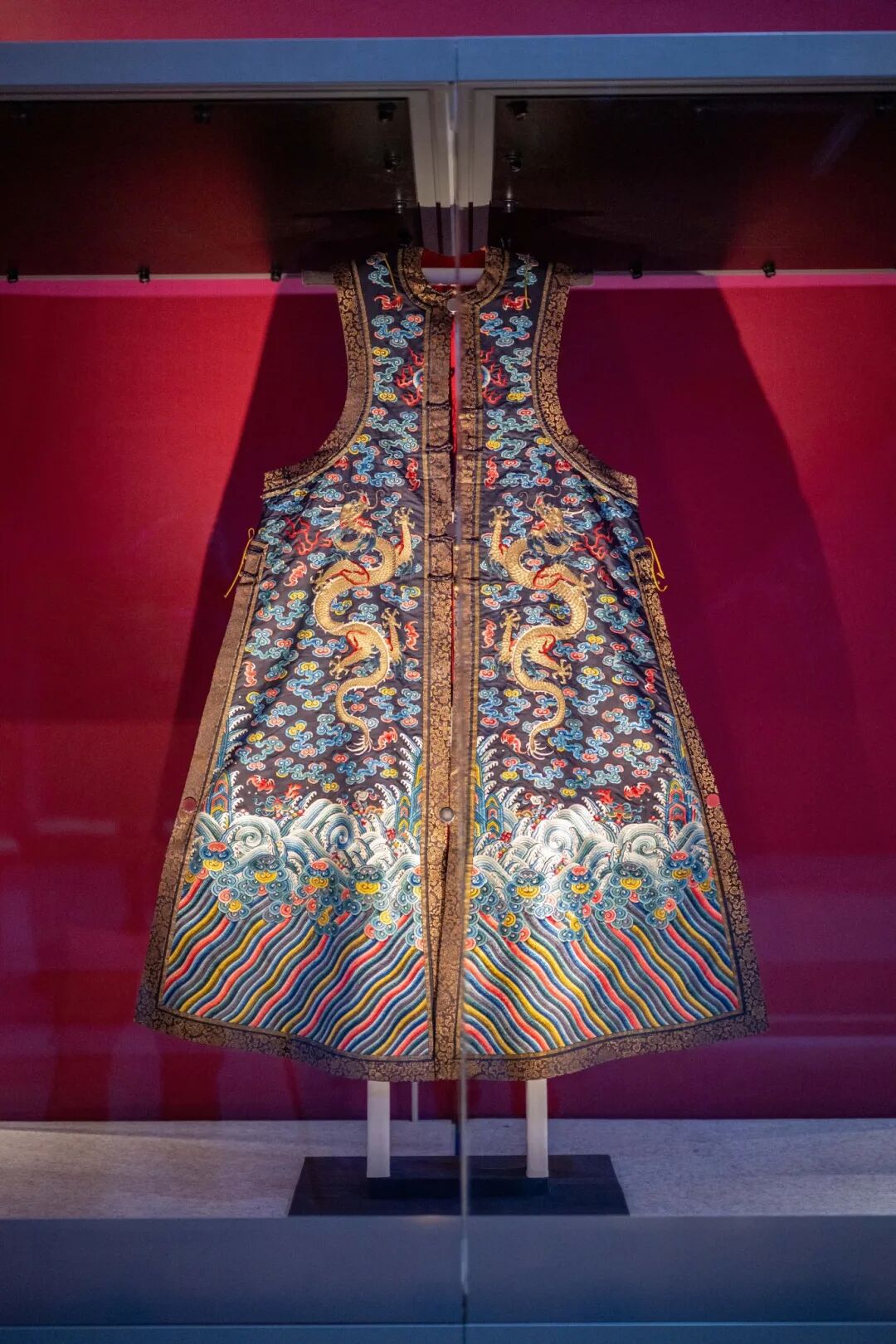 ▲清道光 石青色绸绣彩云金龙纹夹朝褂 故宫博物院藏