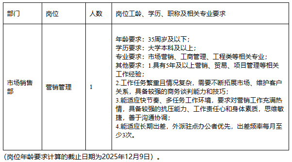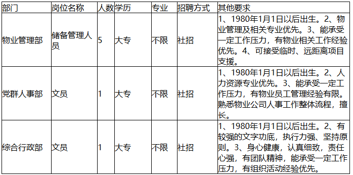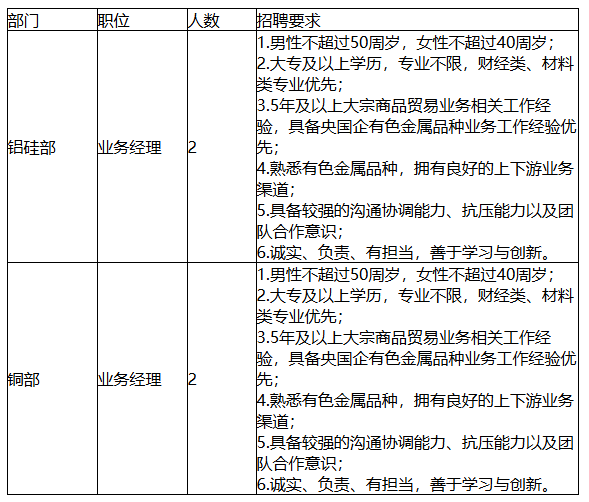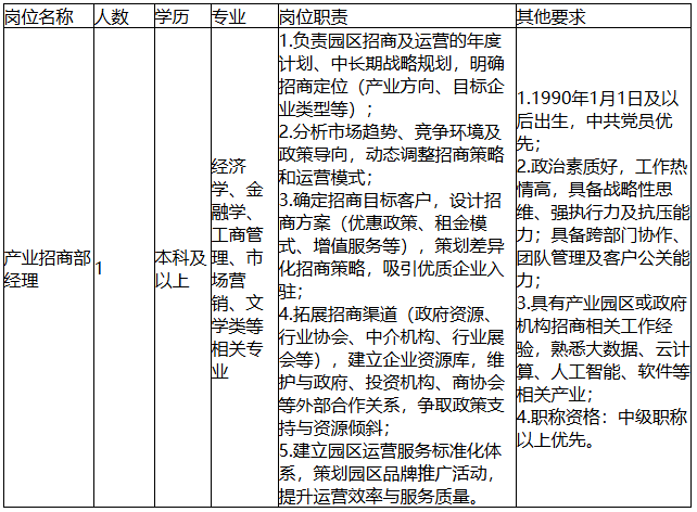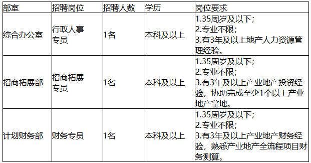 招聘岗位及要求