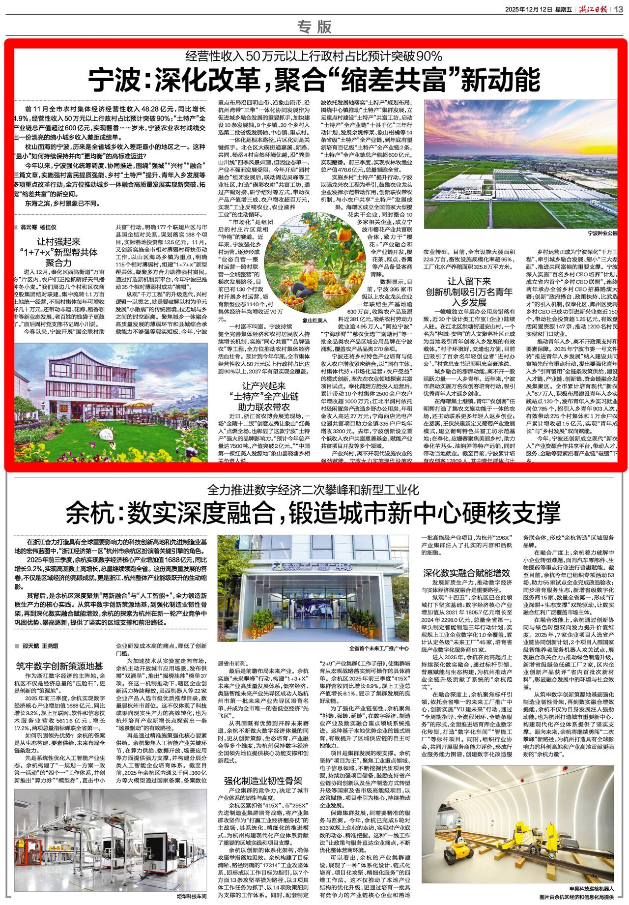 一村富不叫富。宁波持续健全完善集体经济和农村居民收入持续增长机制,实施“同心共富”“品牌强农”等工程,全方位推动农村集体经济活血壮骨。预计到今年年底,全市集体经营性收入50万元以上行政村占比达到90%以上,2027年有望实现全覆盖。