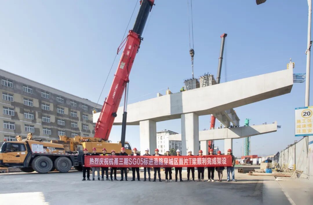 12月20日上午,浙江交通集团杭甬高速复线宁波段三期项目施工现场再传捷报——随着一片长30米、重达76吨的预应力混凝土T梁在进港路高架桥(凤阳一路段)第一孔位置精准落位,标志着该项目进港路穿城区段正式进入上部结构施工阶段。