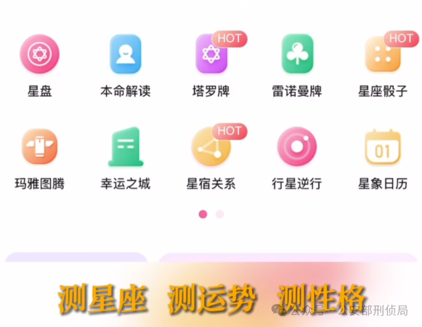 “测星座”“测性格”“测运势”等各类测试,往往需要填写个人的姓名、手机号、身份证号,一旦填写以上个人信息,你的性格喜好、家庭条件等情况就会被骗子收集分析,从而量身定制诈骗方案,实施精准诈骗。