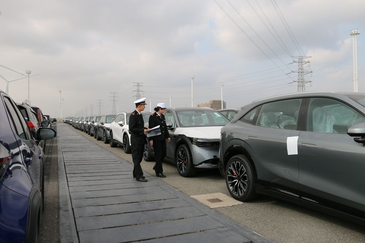 宁波海关关员对出口汽车进行现场监管。应俊 摄