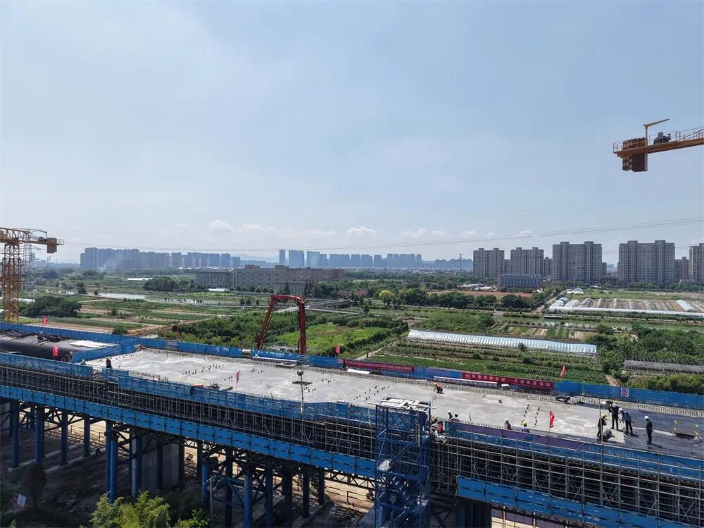 此次合龙的连续梁是慈溪特大桥B段的“最后一联”,采用8×32米结构设计,连续浇筑时长22小时,累计浇筑混凝土790.23立方米。由中铁北京局通甬项目一分部负责施工的这段道岔连续梁群,全长261.4米,是全线控制性工程之一,具有跨度大、精度要求高、工艺复杂等特点。