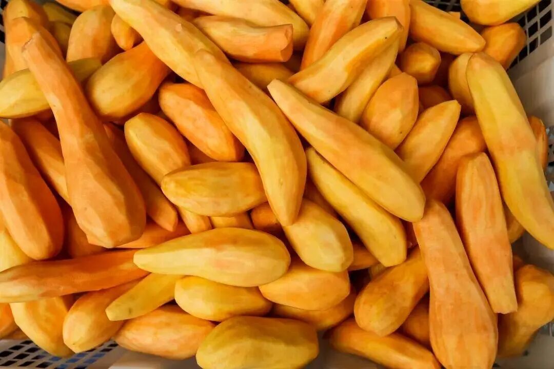 1、挑选每只半斤到七两的番薯,削皮洗净备用。
