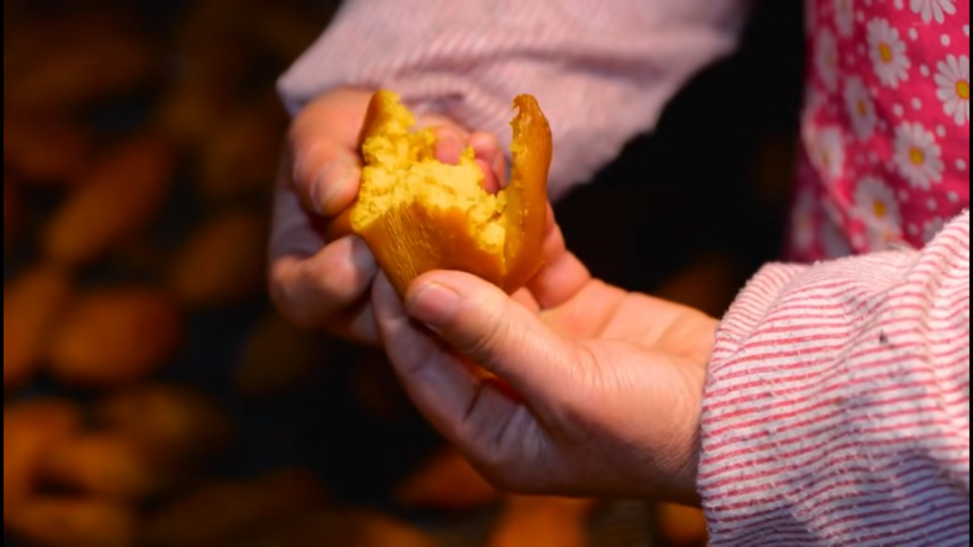 4、制作完成的番薯枣子可以直接食用,表皮像牛皮糖一样软软韧韧,芯里清甜如蜜,还有点轻微的烟熏香味。