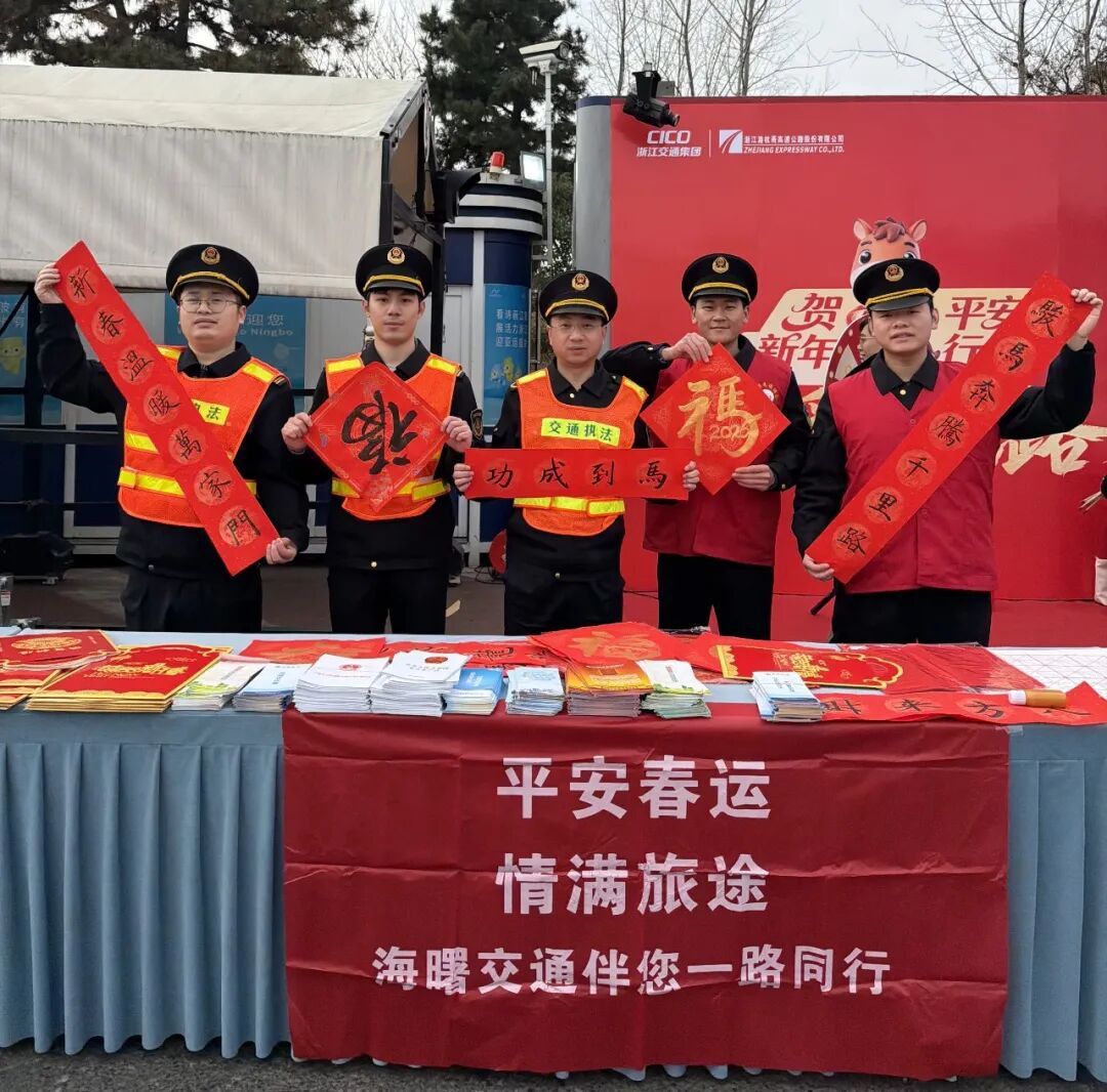 为营造安全有序的交通运输环境,保障人民群众平安出行,海曙区交通执法队以“一路同行”党建品牌为引领,提前部署谋划,联动公安交警部门在杭甬高速宁波出入口全力开展“护航春运”专项行动。此次春运首日专项行动不仅温暖了旅途,也切实筑牢了交通安全防线。截至当日,累计出动执法人员44余人次。