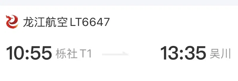 LT6647航班:10:55从宁波机场T1起飞,13:35到达湛江吴川机场;