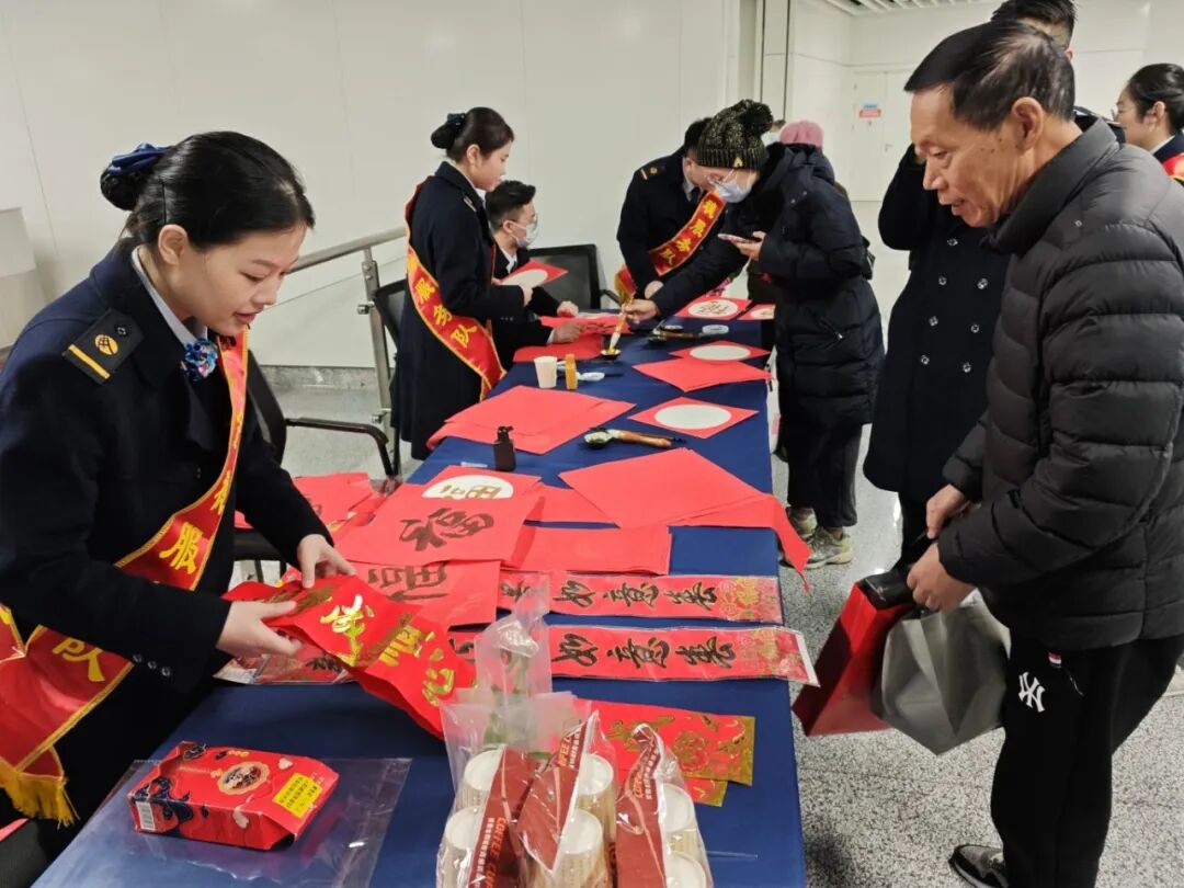 开展“新春送福·福满归途”活动,设置手写福字、剪纸拓印、红包DIY体验区,并布置马年主题拍照打卡点,传递新春祝福。