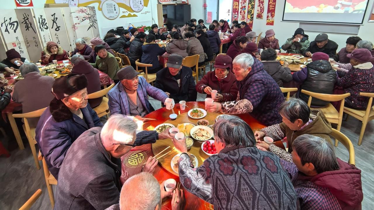 此次爱心年夜饭活动由党员志愿者、银辉志愿者、巾帼志愿者、青年志愿者等近40位志愿者共同参与。“因为忙于生意,我们家孩子小时候常常跑各家蹭吃蹭喝,感谢村里人的照顾。现在,我们也应该尽一份力,让村里老人能够吃上舒心的年夜饭。”今年53岁的缪曼洁是华家宁的母亲,同时也是此次活动的一名巾帼志愿者。