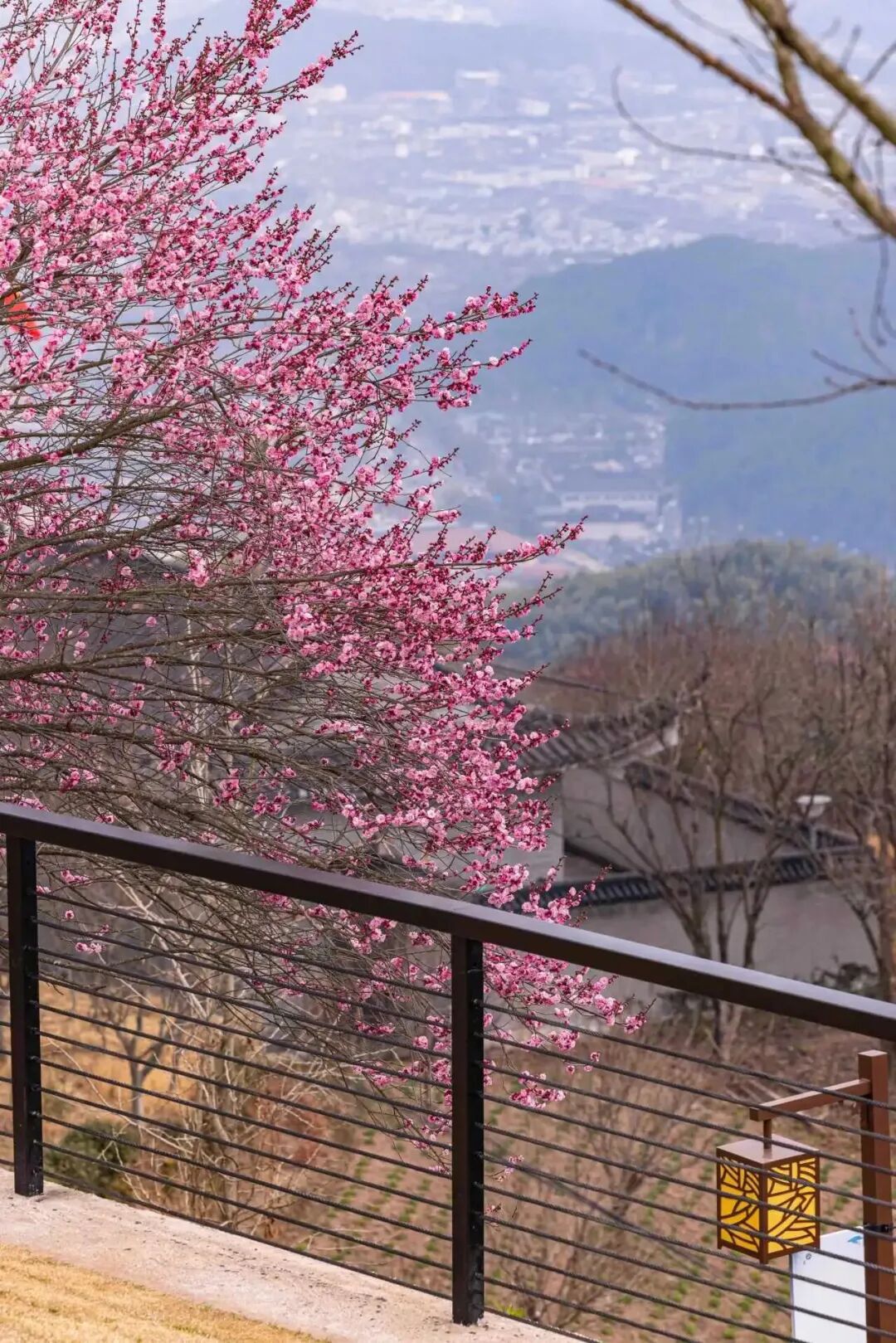 🌸 东山村一览咖啡馆前,有一株树龄超十年“报春梅”,它枝干苍劲,花朵娇艳,枝条与石头墙相互映衬,拍照很出片。在咖啡馆小憩,赏景喝咖啡,也颇为惬意~