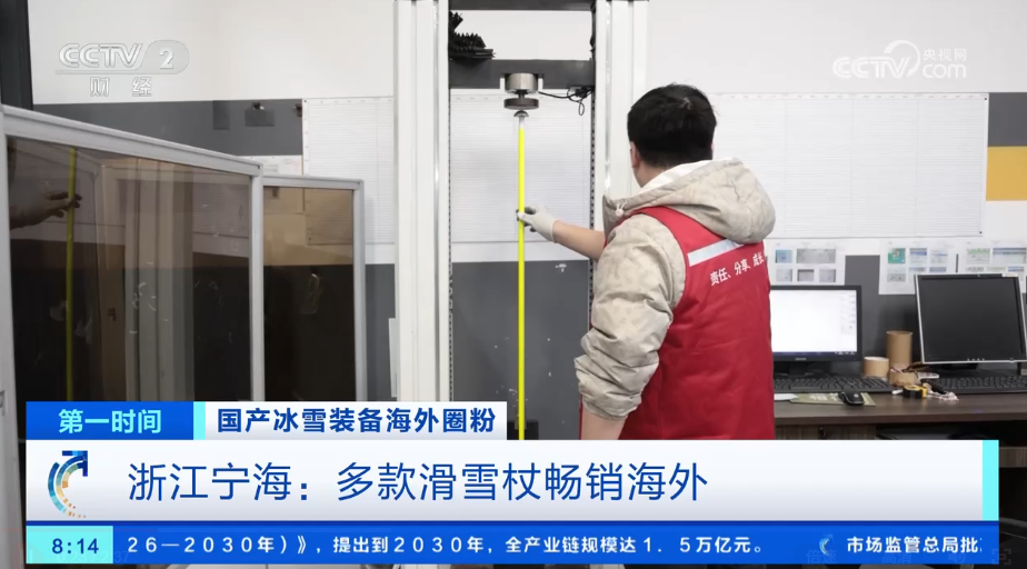 冰雪运动的热潮从冬季延伸至四季,我国冰雪装备生产企业也是随之全年忙碌。据统计,目前我国出口的滑雪杖中每10根里就有7根来自浙江宁波的宁海县。2月14日、15日,央视《新闻直播间》《第一时间》栏目播出《国产冰雪装备海外圈粉 浙江宁海滑雪杖:多款产品畅销海外》,探寻宁海滑雪杖热销海外的奥秘。