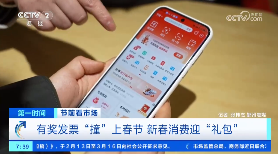 今天(2月17日),央视《第一时间》《经济信息联播》栏目播出《有奖发票“撞”上春节 新春消费迎“礼包”》,报道了宁波的有奖发票活动自2月6日启动以来,消费者已累计上传发票超53万张,活动已发放奖金超670万元,带动相关行业商家的销量有了显著提升。