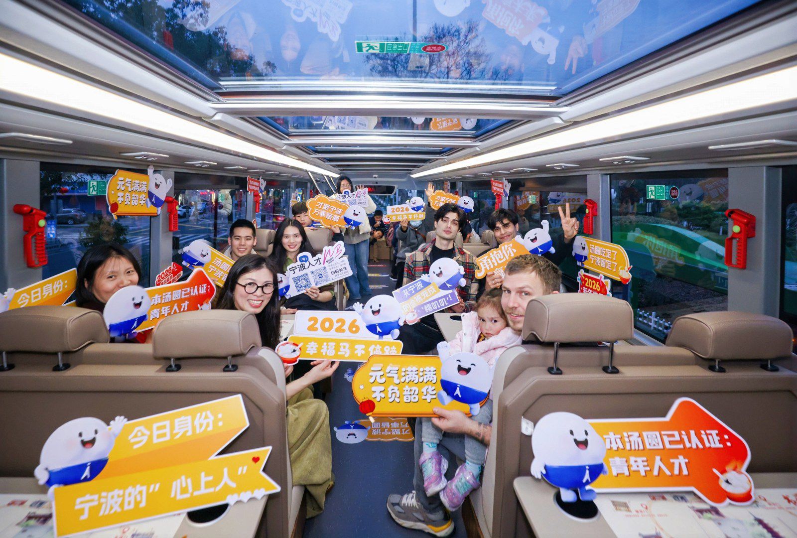3月3日,正月十五,一场别开生面的“宁波人才小汤圆陪你闹元宵”人才主题活动在海曙温馨举行。一辆贴着萌趣“小汤圆”IP形象的双层巴士——“罗小巴”,载着12组在甬人才家庭,从宁波火车站北广场缓缓驶出,开启了一场特别的元宵之旅。