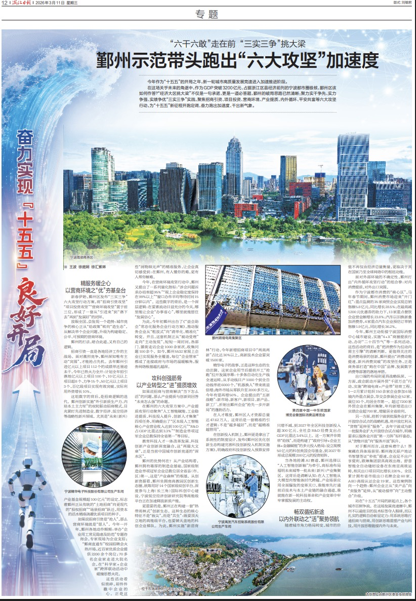 站在“十五五”开局的新起点上,各个城市百舸争流。在这场发展竞速赛中,鄞州不以最炫目的技术标签夺人眼球,而以扎实的逻辑自洽彰显定力:用系统思维打通招商与营商,用创新思维重塑产业与科技,用开放思维链接内外与未来。