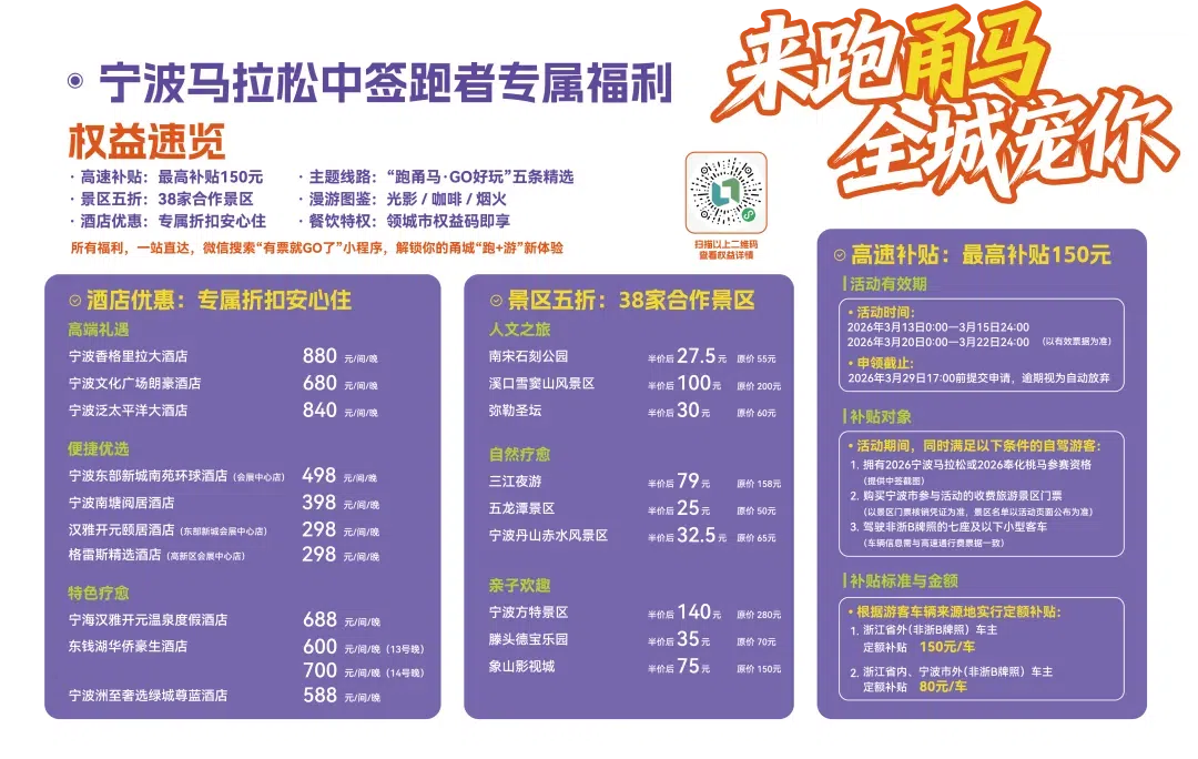 2026宁波马拉松报到领物将于3月12日13:00正式开启,请各位跑者提前了解参赛物品领取流程及注意事项,详细信息请点击查看【领物须知】链接,确保顺利领取赛事物资。