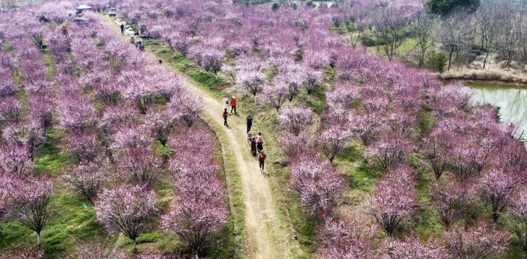 荷花塘岗位于绍兴嵊州市崇仁镇富润村,是春季赏花热门地,以千亩美人梅著称。