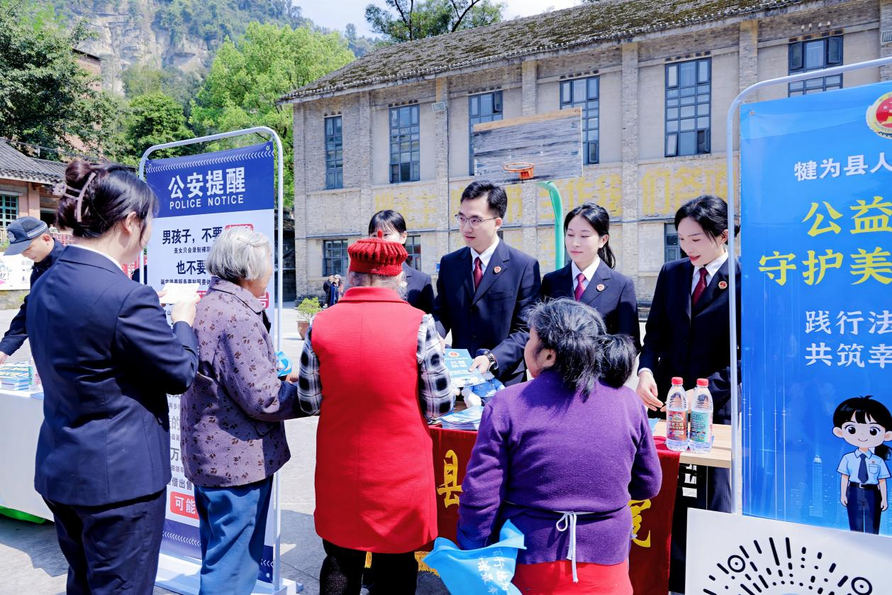 由乐山市委网信办、市公安局、团市委、犍为县公安局民警等单位专业人士组成的网络普法反诈宣讲团在景区开展现场普法宣讲活动。主办方供图。