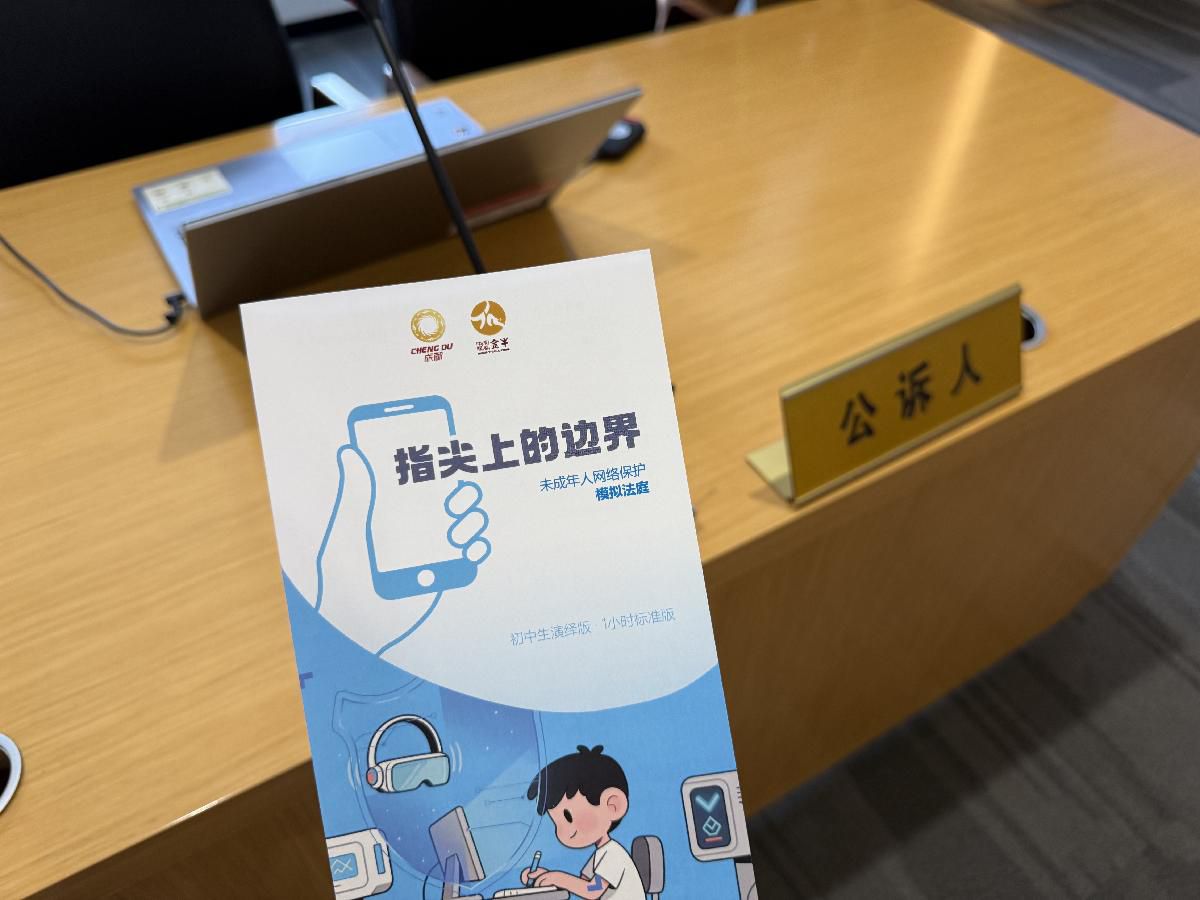 成都市金牛区青少年普法教育基地模拟法庭《指尖上的边界》。中国网信网 王宇彤 摄