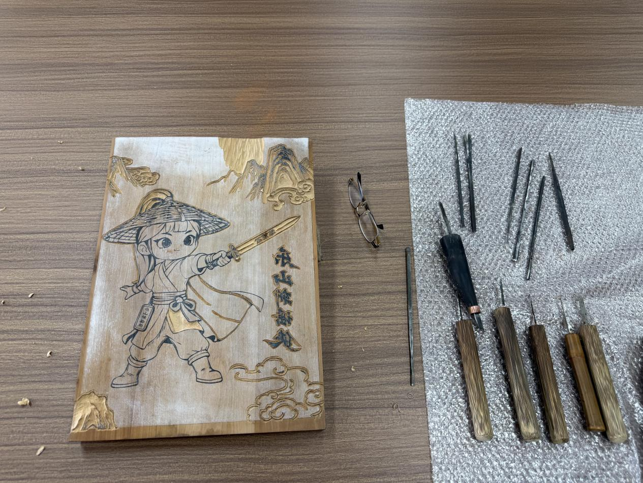网络谣言治理也是群众关切的热点,张荣强向采访团展示他精心雕刻的“乐山斩谣侠”木板,大侠手握宝剑,周围环绕着祥云,格外引人注目。如今,年画馆已成为学生研学常来的地方,“我给他们讲年画的历史,也讲年画上的法治内容。孩子们特别感兴趣,总是围着我们问这问那。”张荣强说,“我用年画告诉大家,网络不是法外之地。”崇德尚法的内涵在民俗文化中悄然传承,法治意识随着一幅幅年画走进千家万户。