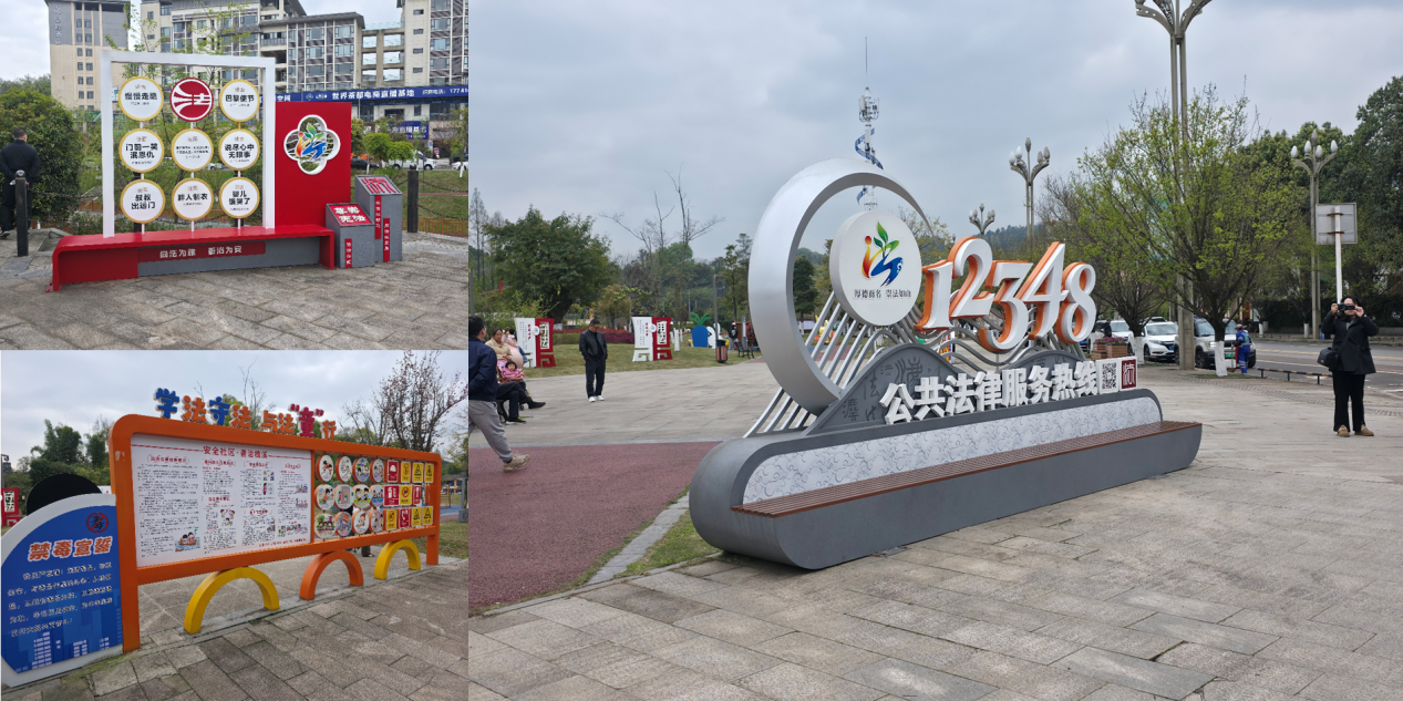 拼版图片:雅安市名山区法治文化公园内的法治宣传设施。中国网信网 陈舞阳 摄