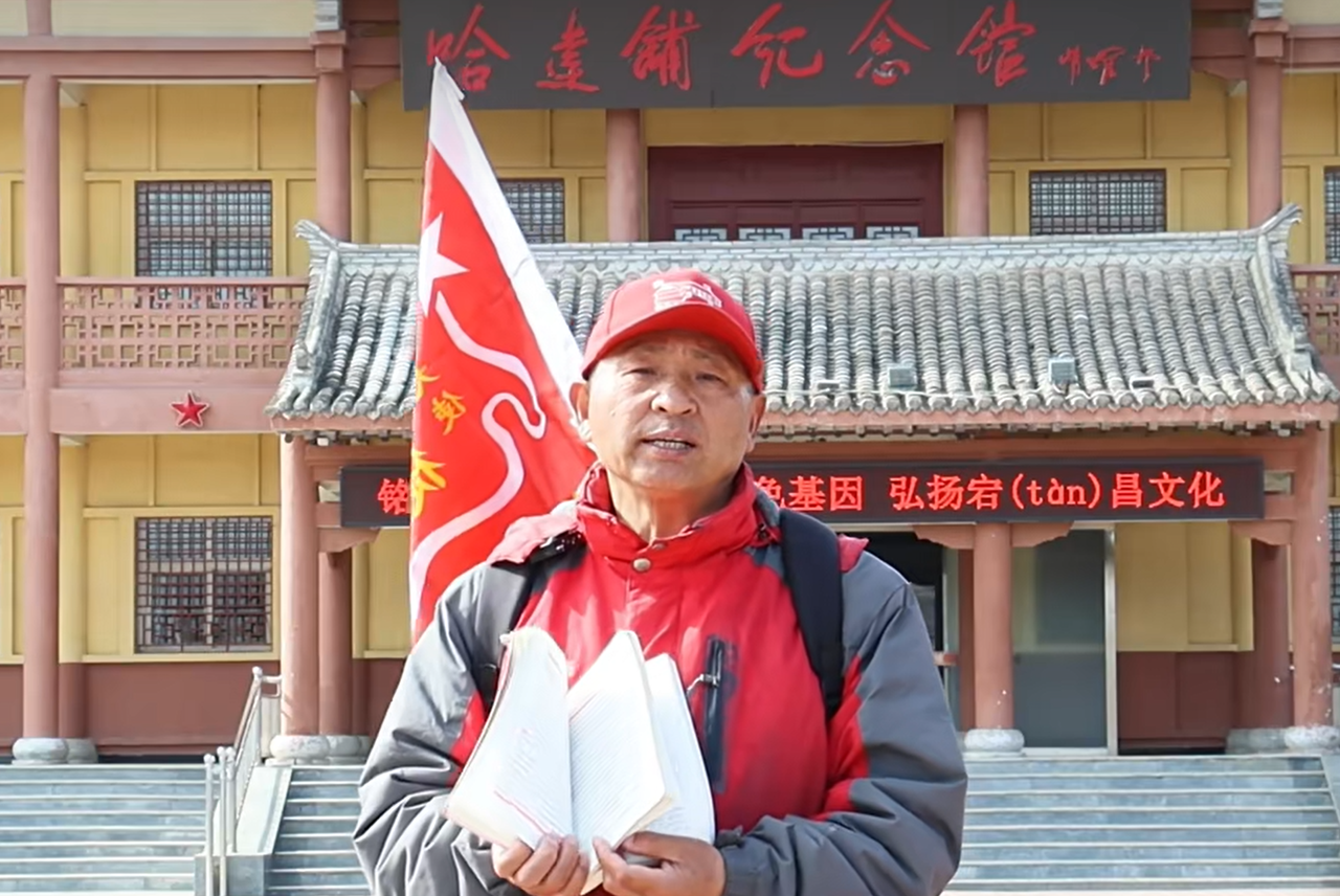 黄振贵徒步重走长征路的第314天,抵达甘肃省哈达铺镇。(受访对象 供图)