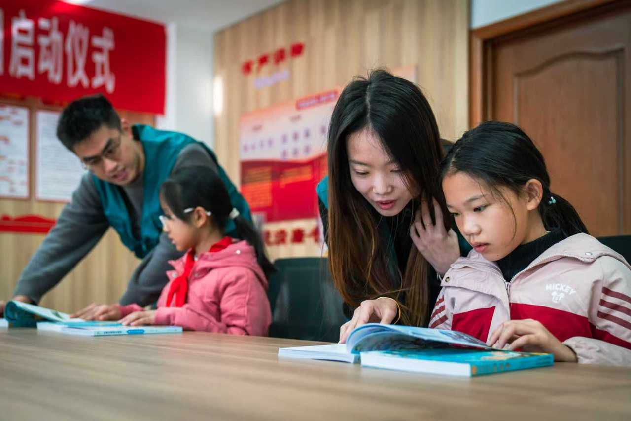小草志愿服务队陪孩子读经典。(受访对象 供图)