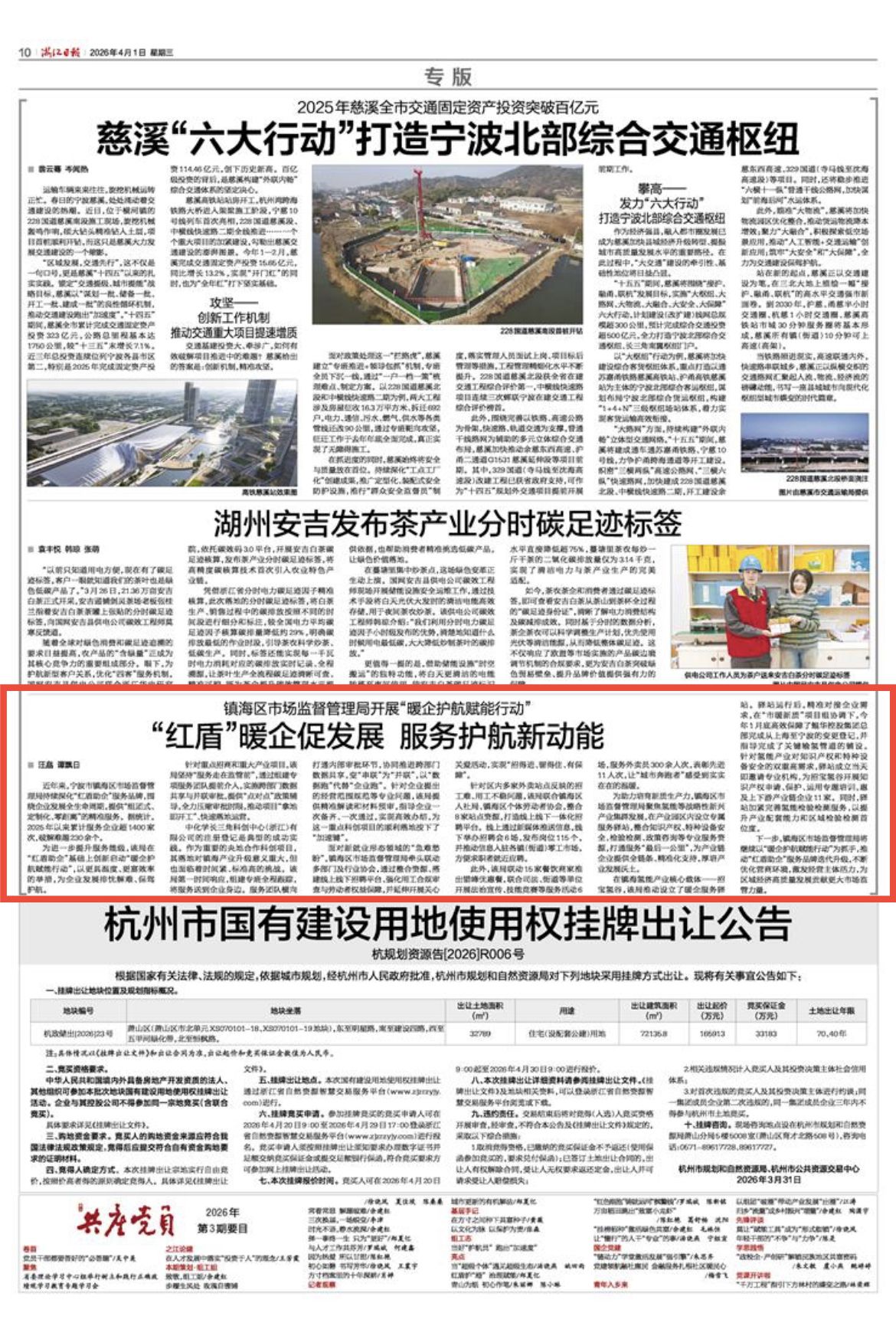 近年来,宁波市镇海区市场监督管理局持续深化“红盾助企”服务品牌,围绕企业发展全生命周期,提供“组团式、定制化、零距离”的精准服务。据统计,2025年以来累计服务企业超1400家次,破解难题230余个。