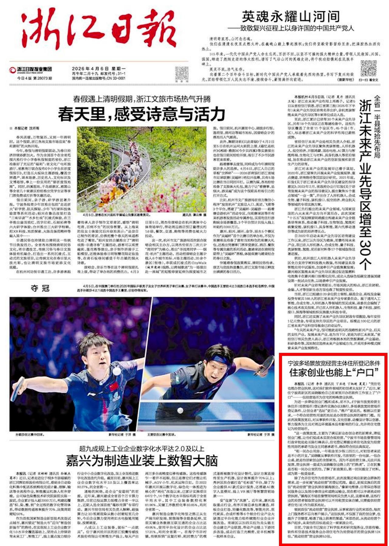 “凭住宅也能办营业执照,这对我们软件领域的初创者太友好了。”近日,家住宁波高新区的吴晓敏给自己在家里开办的软件工作室上了“户口”——一张经营场所为住宅的特殊营业执照。