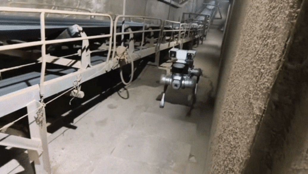 宇树的机器狗正在演示定点巡检。图片来自“宁波开投”微信公众号