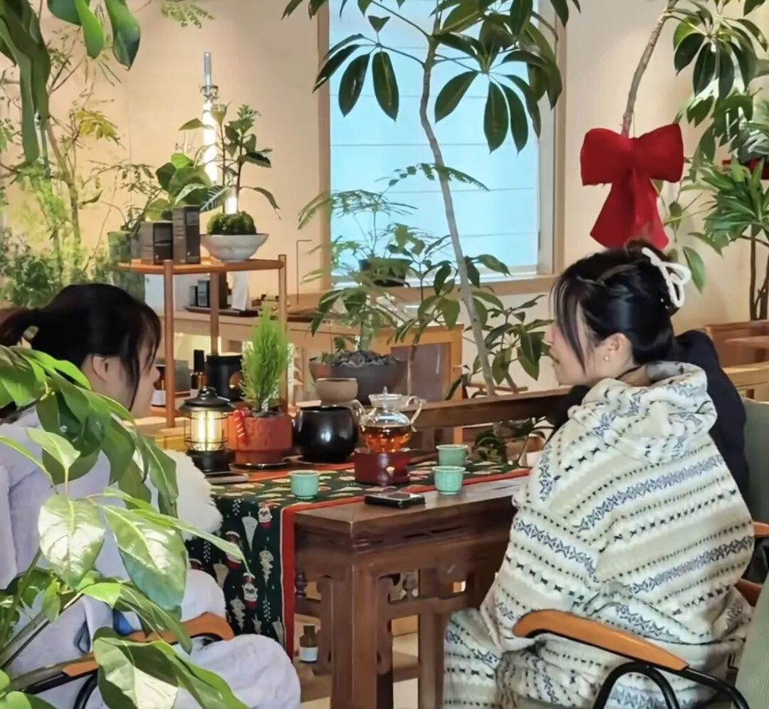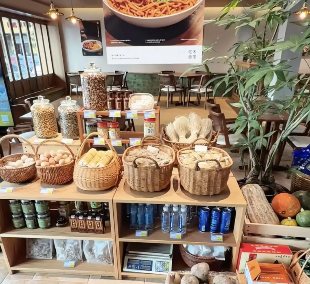 门口扶手全是木头包裹的,因为董雅琴发现冰冷的金属在冬天让老人缺乏安全感;调料区像火锅店一样丰富;茶馆吸纳了一位残障青年就业,帮助他们融入社群、拥抱成长;作为宠物友好餐厅,左邻右舍牵着“毛孩子”来这里喝咖啡是高频场景,孩子们放学后可以来绿植环绕的空间做作业;堂食同款健康食材就摆出来零售,喜欢的鸡蛋面条和大米都能带回家,茶礼和手工编织的坐垫均由残障人士进行包装,不少企业作为伴手礼采购,让消费变成善意的循环……
