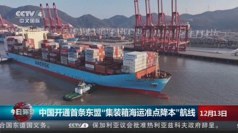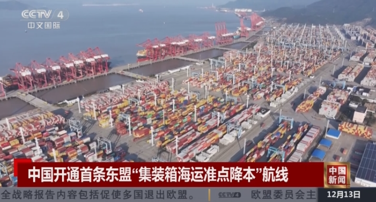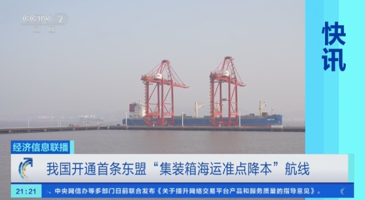 今天(12月13日),央视《今日环球》《中国新闻》《经济信息联播》栏目播出《中国开通首条东盟“集装箱海运准点降本”航线》,报道了12日,中国宁波舟山港至越南胡志明港“集装箱海运准点降本”航线正式开通。该航线的船舶进港从传统的“先到先靠”升级为“预约取号、有序进港”,不仅降低了船舶进出待港时间和营运成本,还可提升港口的运行周转效率。