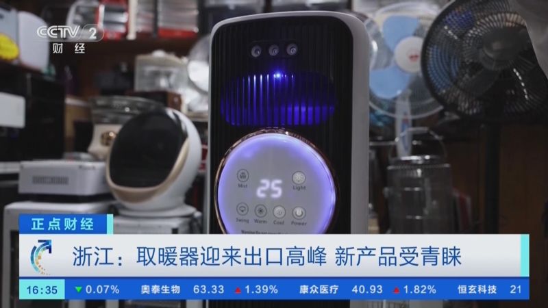 12月17日,央视《正点财经》栏目播出《浙江:取暖器迎来出口高峰 新产品受青睐》,报道了随着冬季到来,取暖器的出口迎来了高峰。在宁波的一家生产取暖器企业,最新设计了一款四周和顶部都能分别发热的取暖器,可以根据需求单独控制每个面,顶部还能加热茶或者咖啡,产品一出就收获了大量订单。