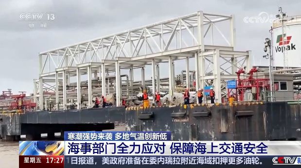 12月12日,央视《新闻直播间》栏目播出《寒潮强势来袭 多地气温创新低 海事部门全力应对 保障海上交通安全》,报道了受到寒潮天气的影响,各地海事部门第一时间启动寒潮大风防范应对措施,保障水上交通安全。为防范即将南下的寒潮大风,宁波海事部门与航海保障部门展开联合行动。