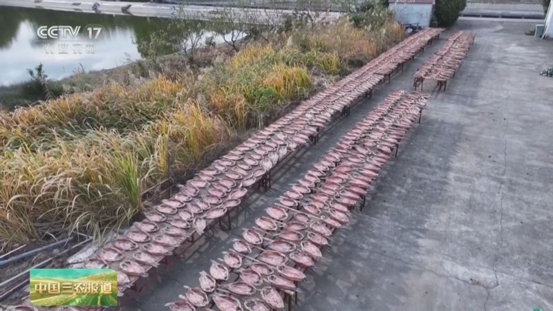 12月17日,央视《中国三农报道》栏目播出《浙江宁波 青鱼干腌制晾晒有讲究 确保口感鲜美》,报道了眼下又到了晒青鱼干的季节,在宁波余姚的一家水产养殖场,一条条体型饱满的青鱼干整齐排列在晾晒架上,工人们正在进行翻面检查,确保它们都能充分接触阳光,保证口感的鲜美。青鱼干的做法极为讲究,不光是青鱼的品质要好,腌制时间、气候等因素也同样重要。据了解,从12月初到现在,养殖场已晾晒1万多斤青鱼干。