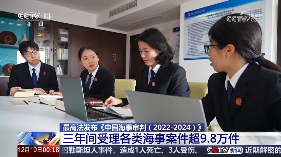 12月19日,央视《新闻直播间》《今日环球》《午夜新闻》《中国新闻》栏目播出《最高法发布<中国海事审判(2022-2024)> 三年间受理各类海事案件超9.8万件》,其中报道了宁波海事法院创设调解、仲裁、诉讼“一站式”涉外海事纠纷多元化解中心,借助海事专家、仲裁员等智库调解力量,有效实现纠纷跨域统筹协调。