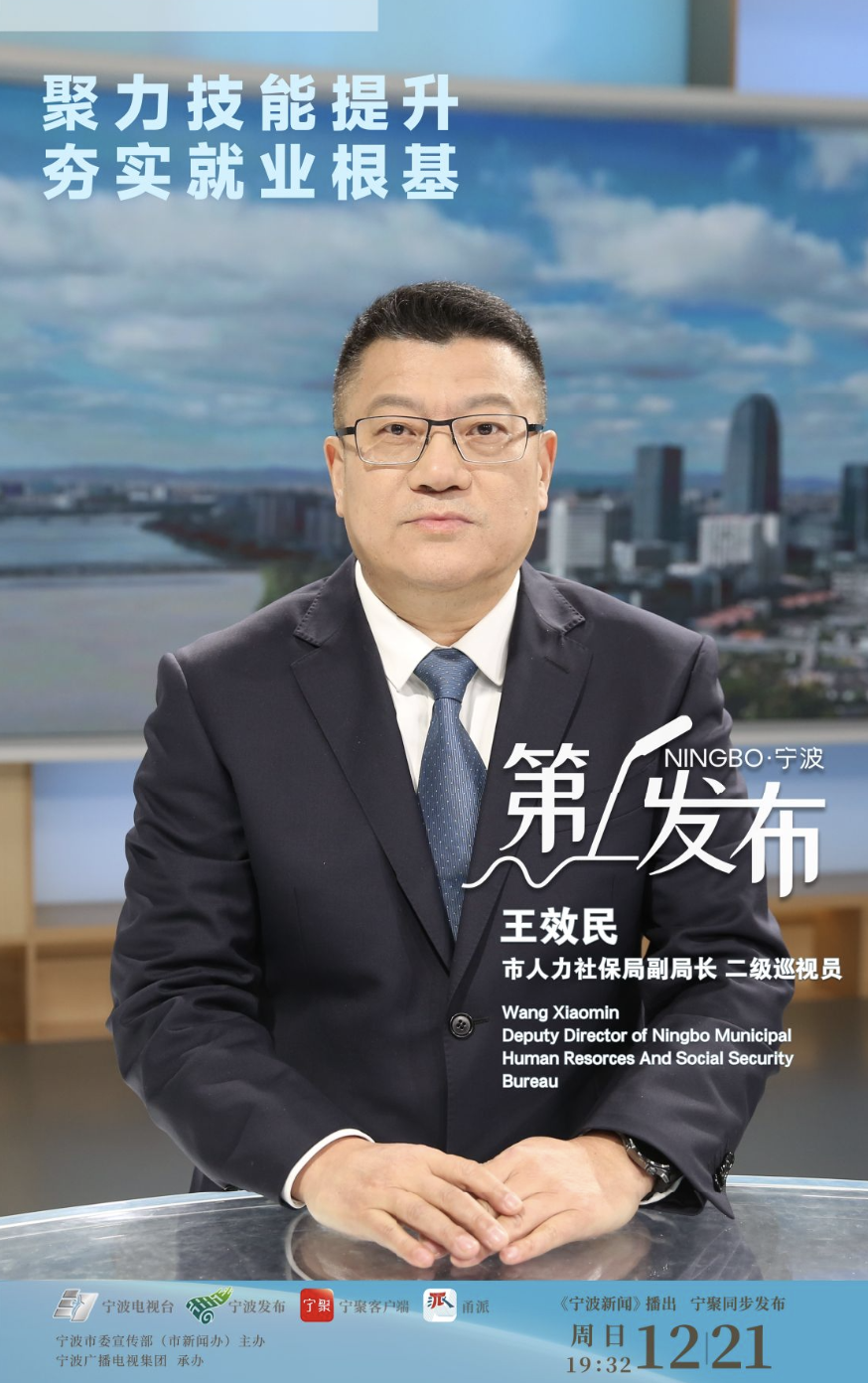 大家好,欢迎收看宁波市人民政府新闻办公室主办的宁波电视台《第1发布》。今天,我们邀请到市人力社保局副局长、二级巡视员王效民,为大家解读我市在职业技能培训方面的创新举措。王局,您好!首先请您介绍下,我市人社部门在普及职业技能培训方面,主要做了哪些工作?